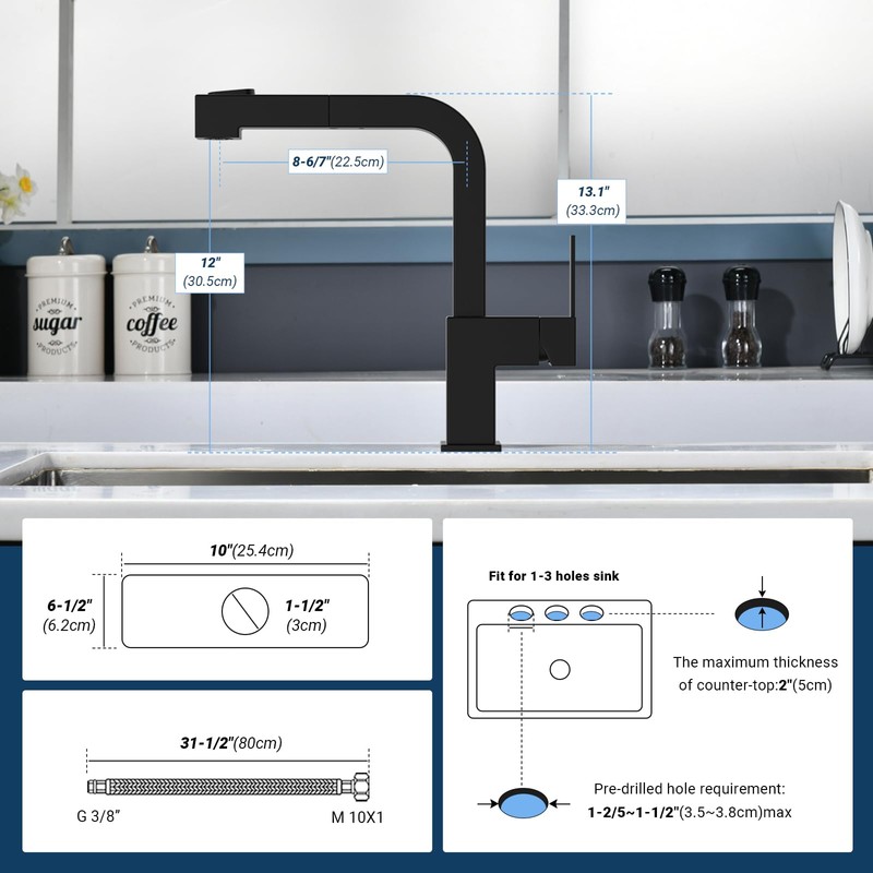 - Pull Down Functionality: The pull down kitchen faucets allows for extended reach, making it easier to clean larger dishes or rinse hard-to-reach areas of the sink