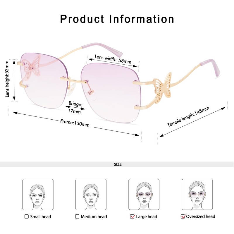 Appassal Oversized Rimless Sunglasses for Women Men Square Butterfly Y2k Sun Glasses AP3678, C4 Gradient Purple, Large