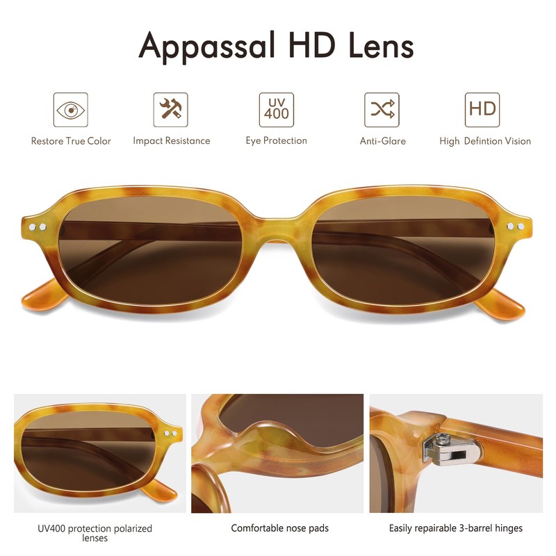 Appassal Retro Rectangle Sunglasses Womens Small Polarized Square Sunnies AP3729,Yellow Tortoise/Brown