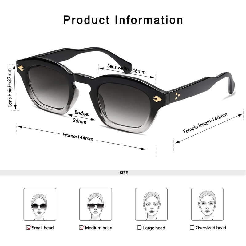 - PRODUCT DIMENSION - Lens Width: 46mm | Lens Height: 37mm | Temple Length: 140mm | Nose Bridge: 26mm.