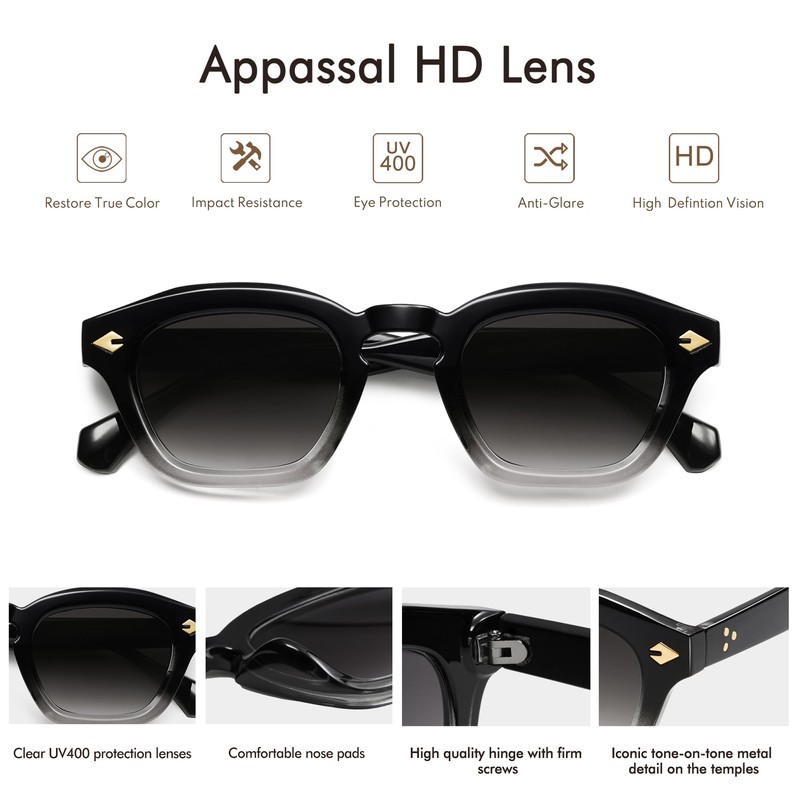 Appassal Retro Small Square Sunglasses for Women Mens Rectangle Sunnies AP3680,Gradient Black/Grey