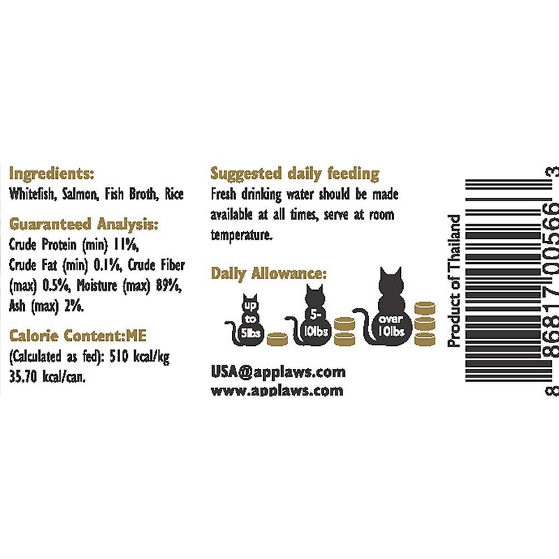 - Applaws Additive Free Canned Cat Food in Broth in 3 Flavor Variety Pack: (4) Whitefish and Salmon, (4) Tuna and (4) Tuna and Crab (12 Cans Total, 2.47 Ounces Each) Plus Shaynanigans Silicone Lid