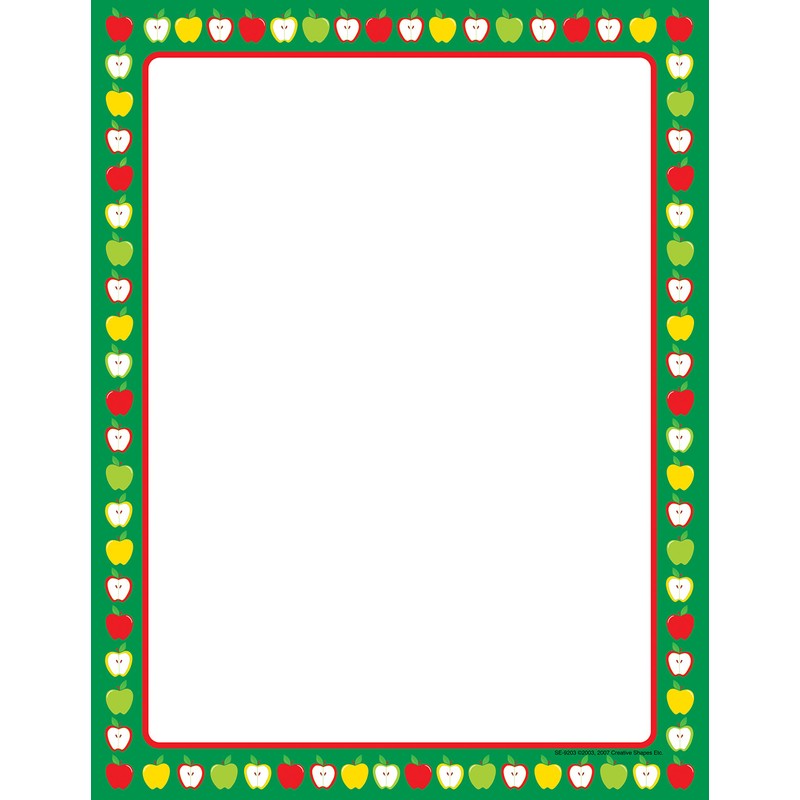 Apple Border Designer Paper- 50 Sheet Pkg. Great for Flyers, Writing Fall Letters, Flyers or Office Notes, Wedding Invitations & Printing Supplies