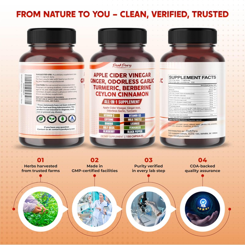 PEAKPURY Apple Cider Vinegar Ginger Odorless Garlic Turmeric Berberine