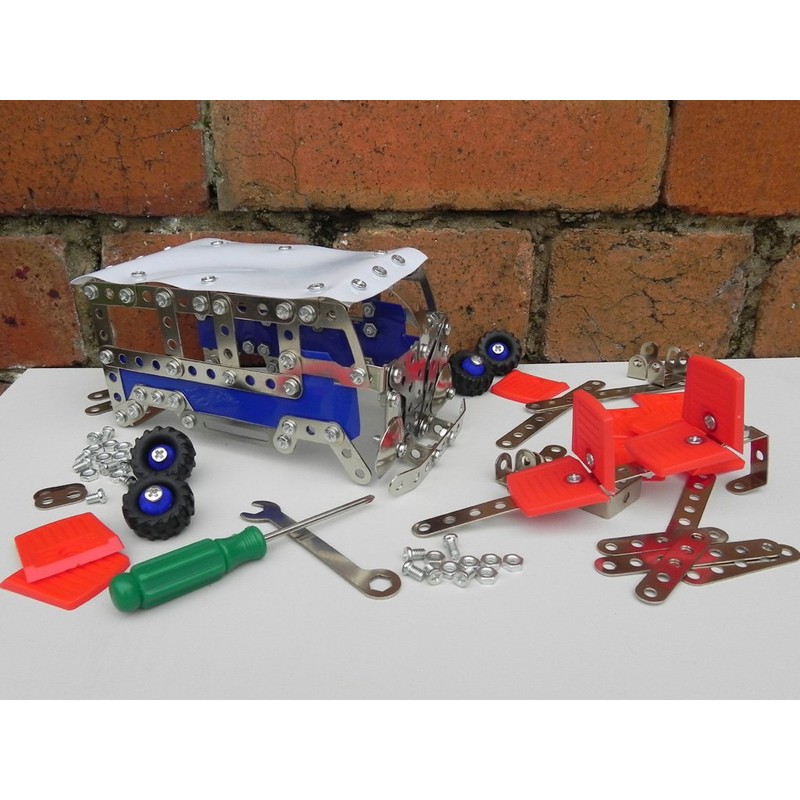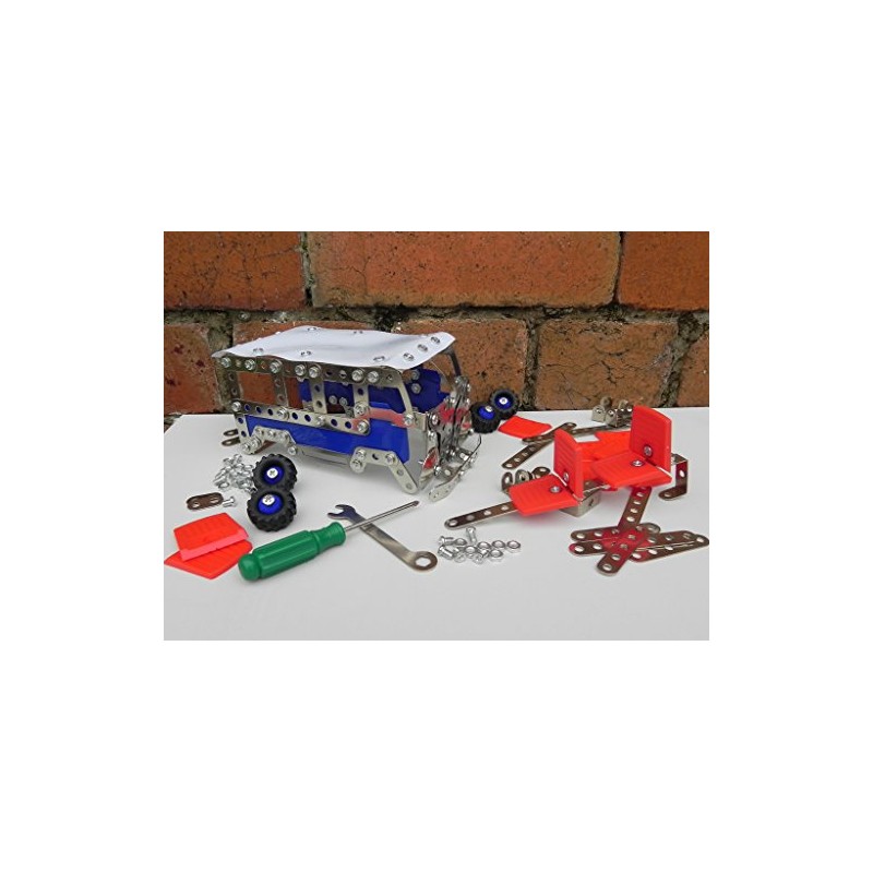 • Contents: Metal and plastic construction pieces, screwdriver, spanner and instructions.