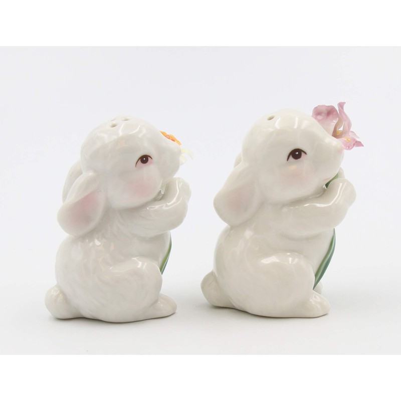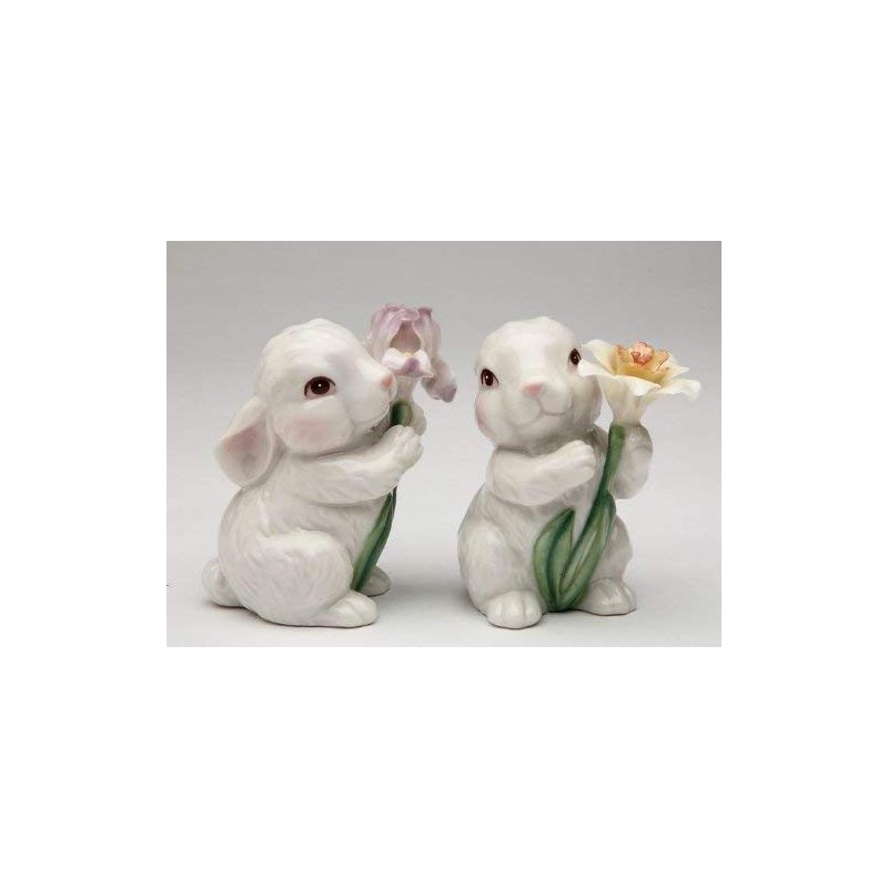 Bunny Rabbits Couple with Flowers Salt & Pepper Shaker