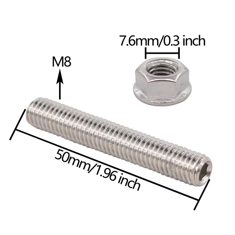 - Package includes: 8 x Stainless Steel Bolts ; 8 x Stainless Steel Flange Nut as pictured