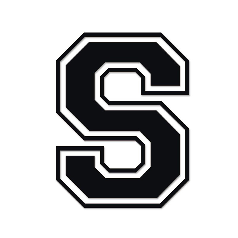 Applicable Pun Varsity Letter S - Vinyl Decal for Outdoor Use on Cars, ATV, Boats, Windows and More - Black 6 Inches Tall