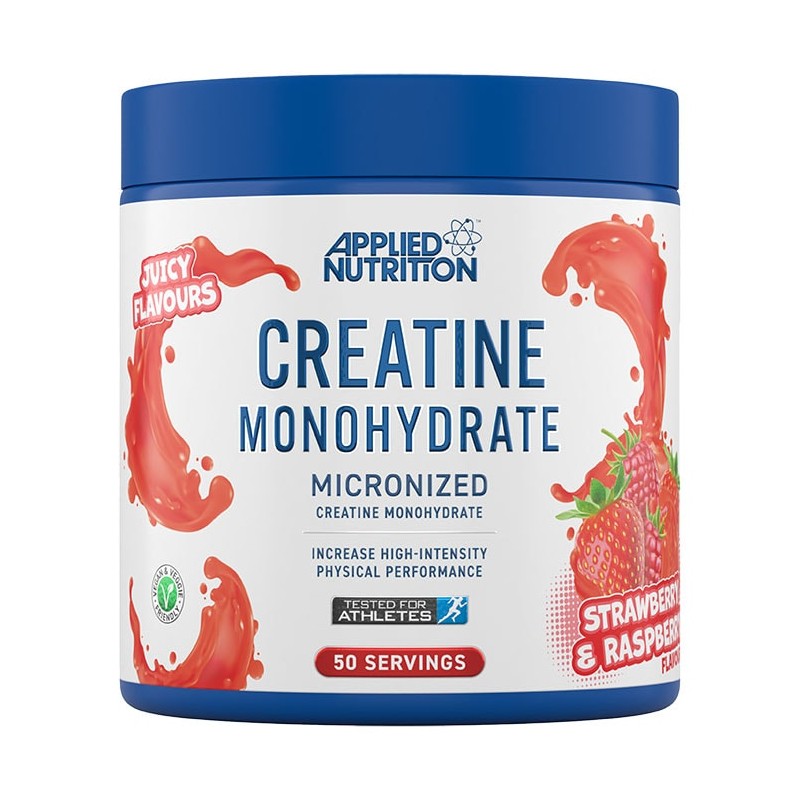 Applied Nutrition Creatine Monohydrate - Strawberry & Raspberry Flavour 250g. Food supplement with sweetener.