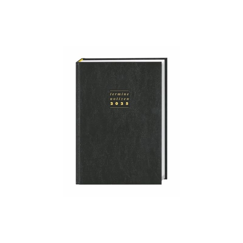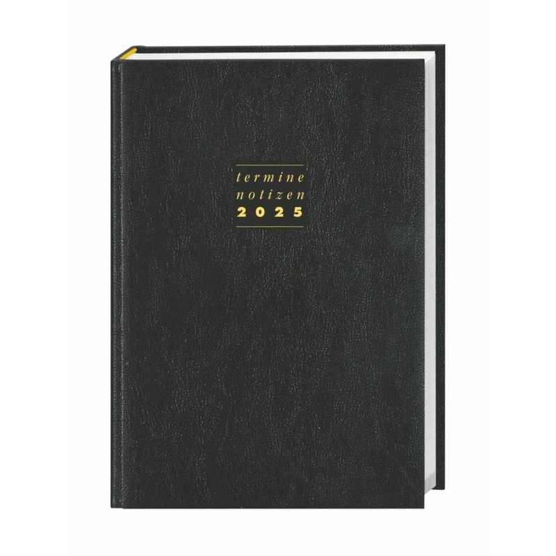 Appointment Diary A5, Black Leather 2025: Black Appointment Calendar with High-Quality Faux Leather Cover, Weekly Planner with Quotes and Ribbon Bookmark. For Planning Appointments (Office Calendar