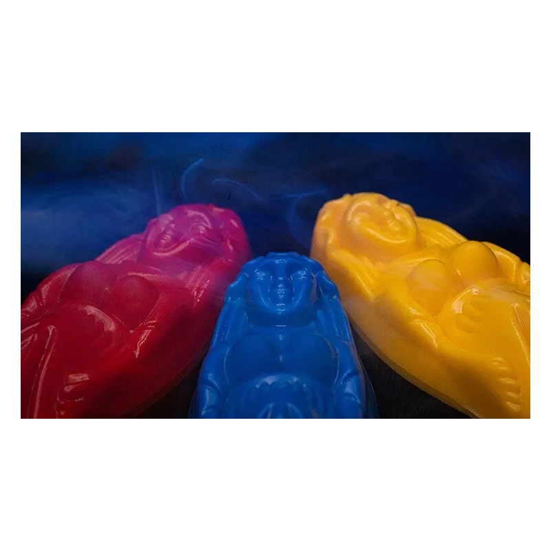 In this fun version of the effect, you show three different colored Mummies (red, blue and yellow) and a black Sarcophagus. You tell the story of three different Egyptian Mummies (Nefertit, Cleopatra and Nitigret).