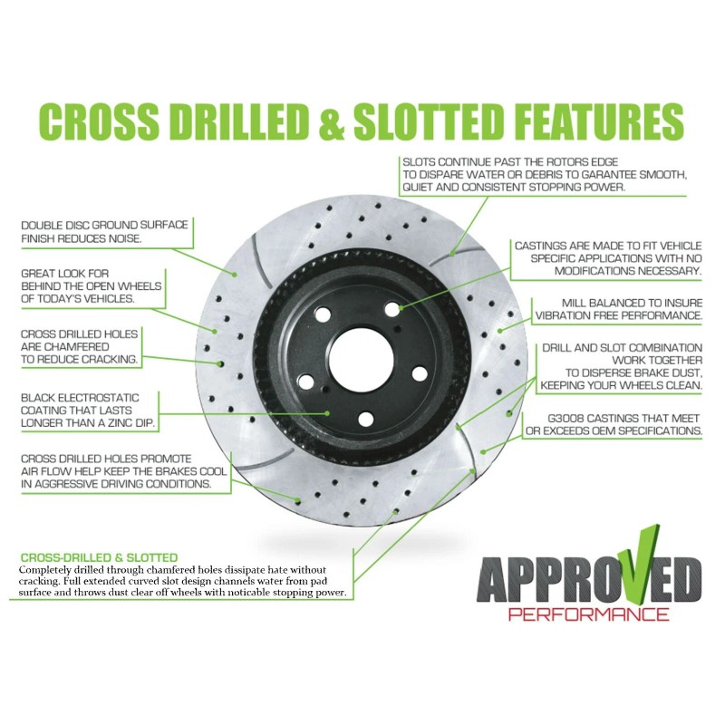 Approved Performance Front Set Premium Drilled and Slotted Disc Brake Rotors (Brake Rotors Only)