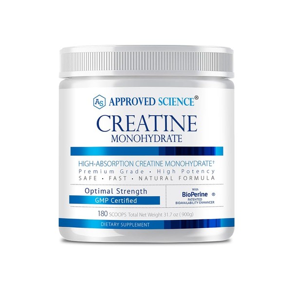 Approved Science Creatine Monohydrate Powder with BioPerine - Supports Lean Muscle Growth and Recovery - 360 Servings - 5000mg Per Serving - Unflavored - Non-GMO, Vegan