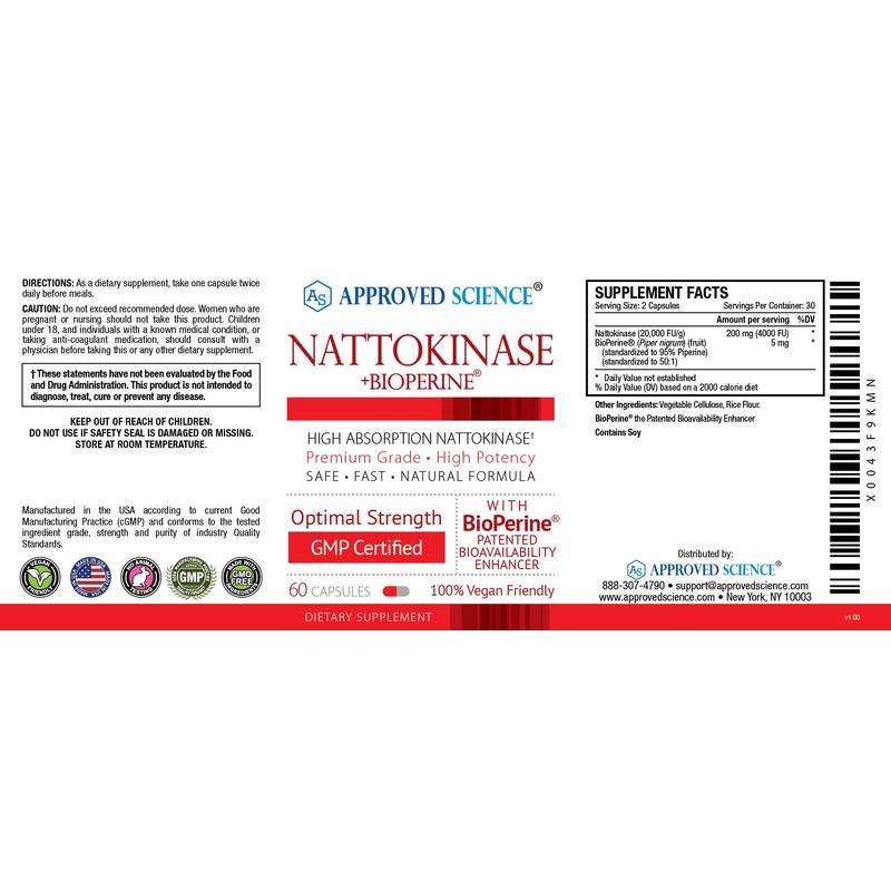 - Commitment To Quality: Approved Science Nattokinase is manufactured right here in the USA, in a facility that adheres to cGMP guidelines. Each batch undergoes rigorous third-party testing to ensure purity, potency, and safety.