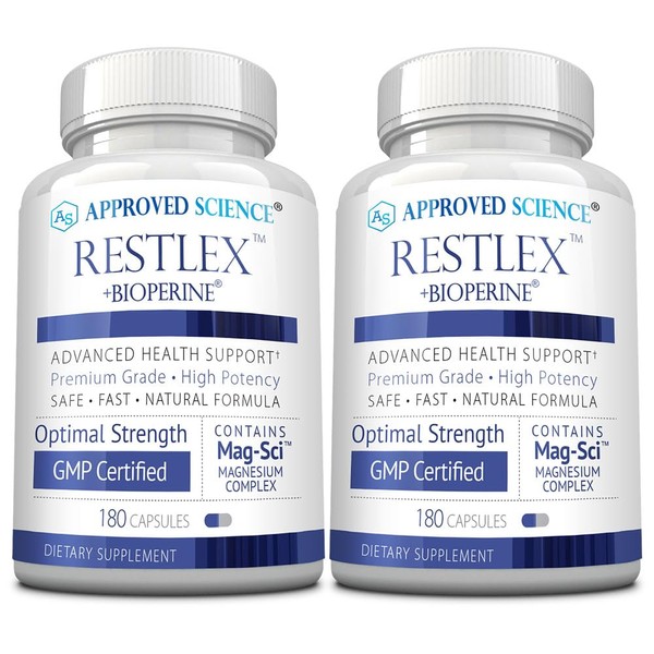 Approved Science Restlex - 420 mg Magnesium Glycinate Blend, L-theanine 200 mg - 360 Capsules - 2 Bottles