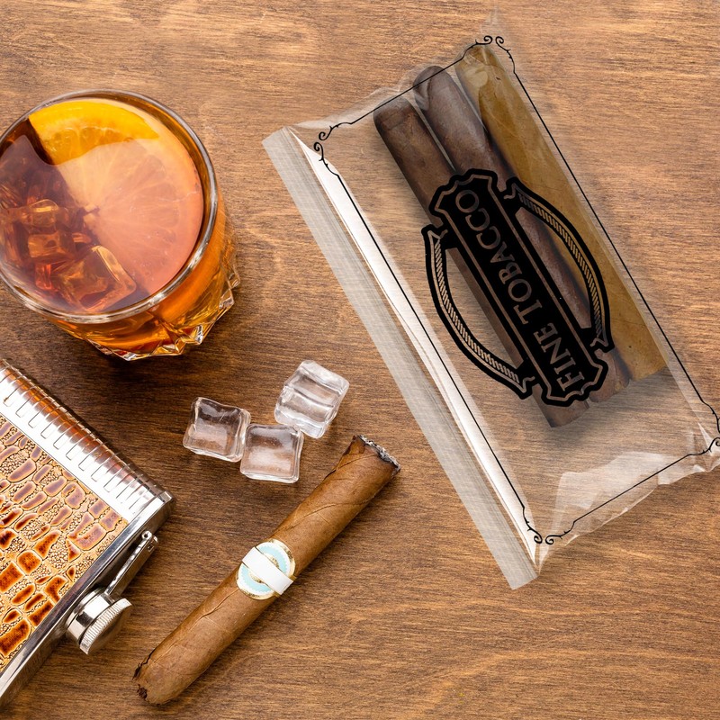- DISEÑO: Estas bolsas de plástico están diseñadas de manera limpia y tienen impreso 'Fine Tobacco'. Estas bolsas transparentes cuentan con un sello hermético y un plástico de gran claridad. Su diseño lo hace cómodo de usar para determinadas salidas o eventos. El cierre superior con sello deslizante de estas bolsas proporciona un acceso conveniente al contenido.