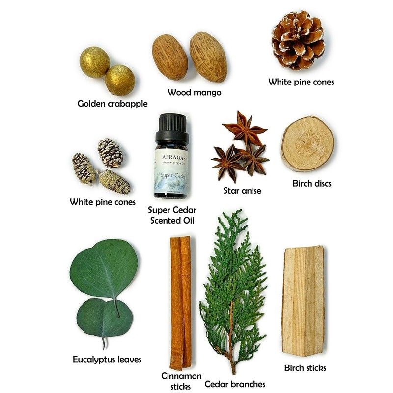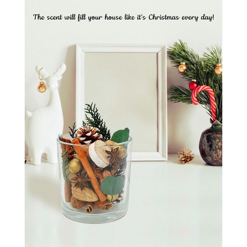 - Christmas Potpourri Bowl Filler: Christmas Potpourri including Cinnamon sticks, star anise, eucalyptus leaves, birch sticks, birch discs, cedar branches, white pine cones, wood mango, golden crabapple and other dried potpourri, which come with Super Cedar Scented. The long-lasting scent will keep your home feeling Christmassy all Christmas long.