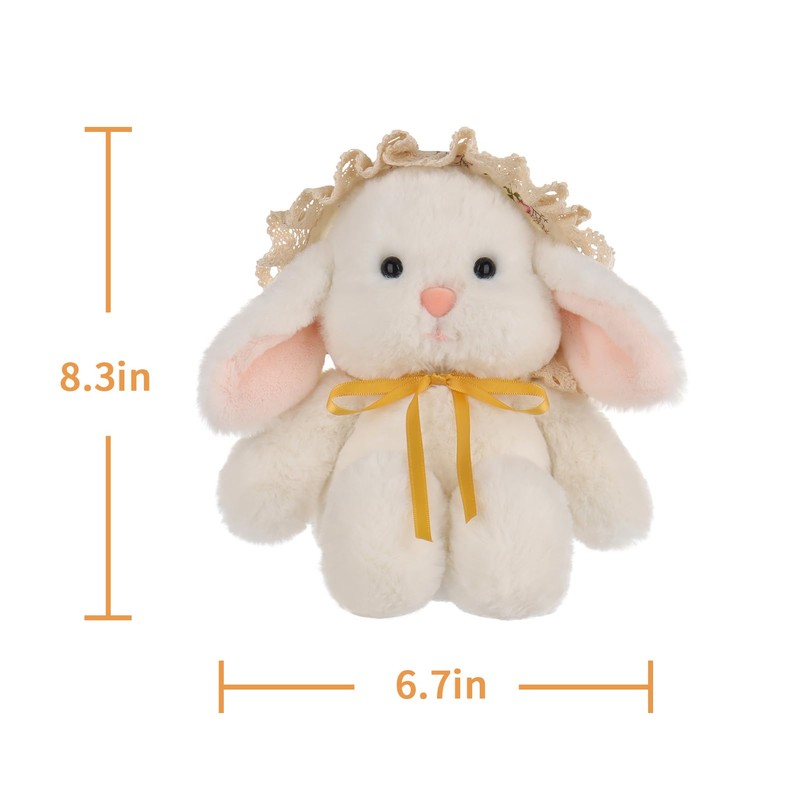 Apricot Lamb Picnic Lop-Eared Rabbit Plushies Stuffed Animals for Kids, Soft Cute Bunny Plush Toys for Baby Girl and Boy, Fluffy Picnic Lop-Eared Rabbit White 8.3 Inches