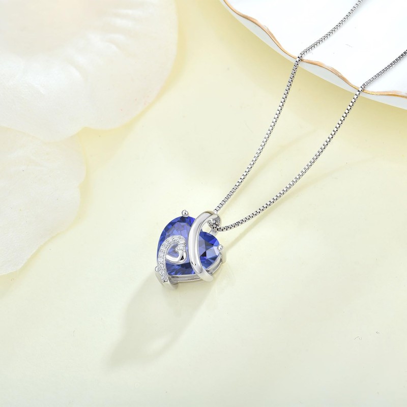 Aprila Women Heart Necklace 925 Sterling Silver Pendant with Chain 5A Cubic Zirconia December Birthstone Tanzanite Color Jewelry for Her