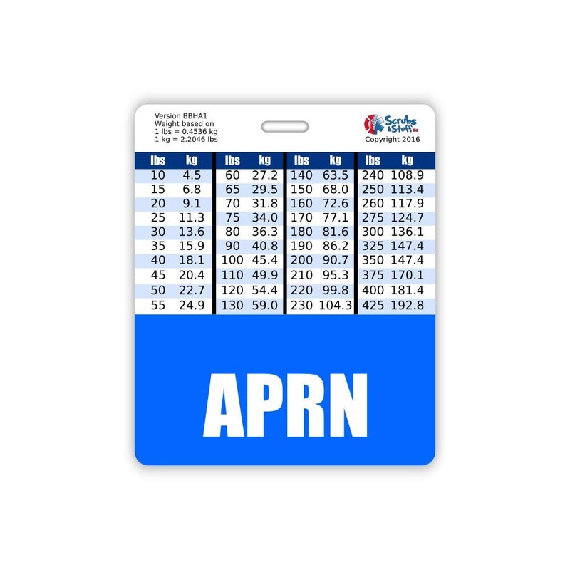 APRN Badge Buddy Horizontal w/Height & Weight Conversion Charts (Oversized, Blue)