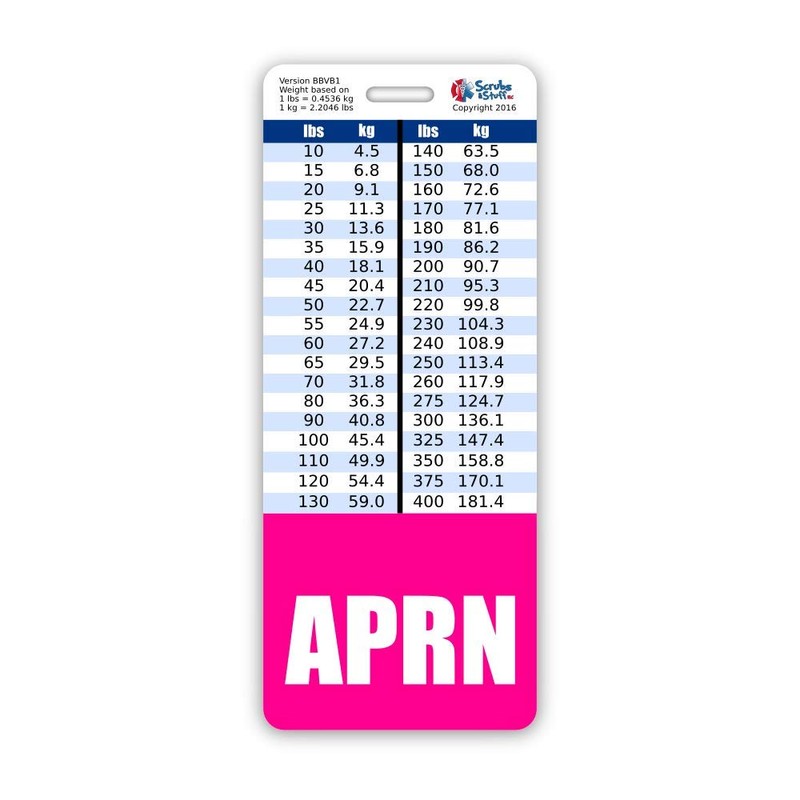 APRN Badge Buddy Vertical w/Height & Weight Conversion Charts (Oversized, Pink)
