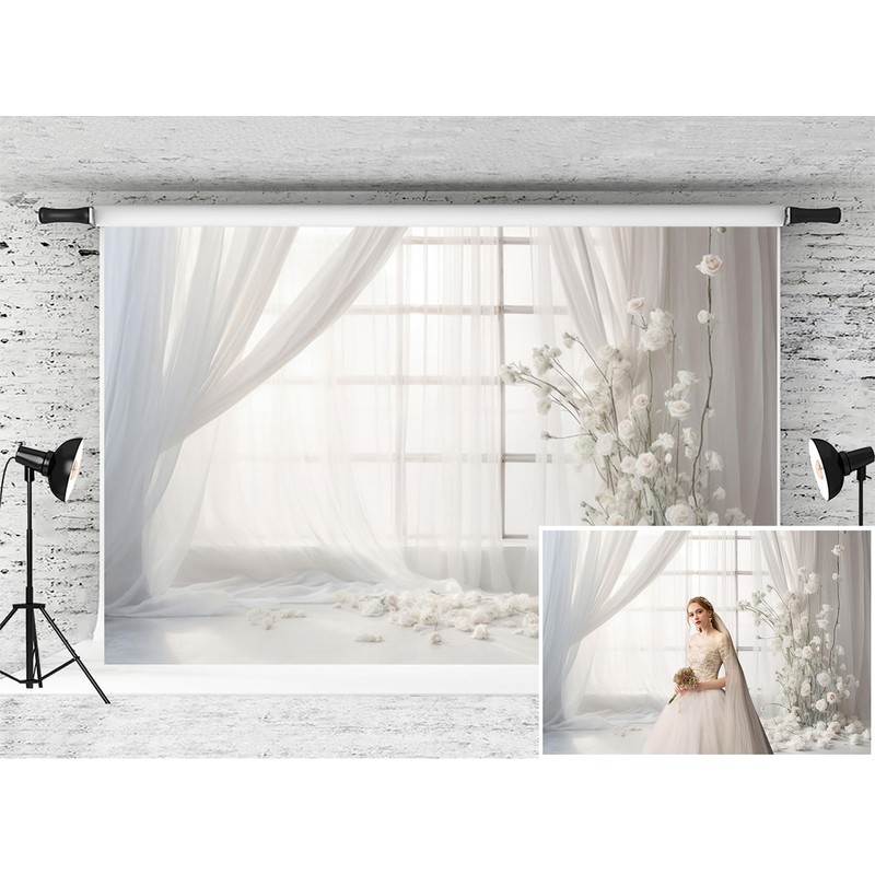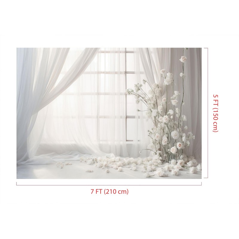 APROPHIC 2.1 x 1.5 m Photo Background, White Curtains with Floral Pattern, Photo Wall Background, Art Landscape, Suitable for Birthdays, Christenings, Photo Walls, Portrait Background, Party Banner