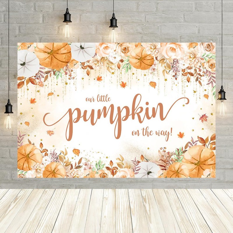 Aprophic Pumpkin Baby Shower Decorations - Fall Baby Shower Banner 'Our Little Pumpkin is On The Way' - Thanksgiving Backdrop Photo Booth Studio 7x5ft