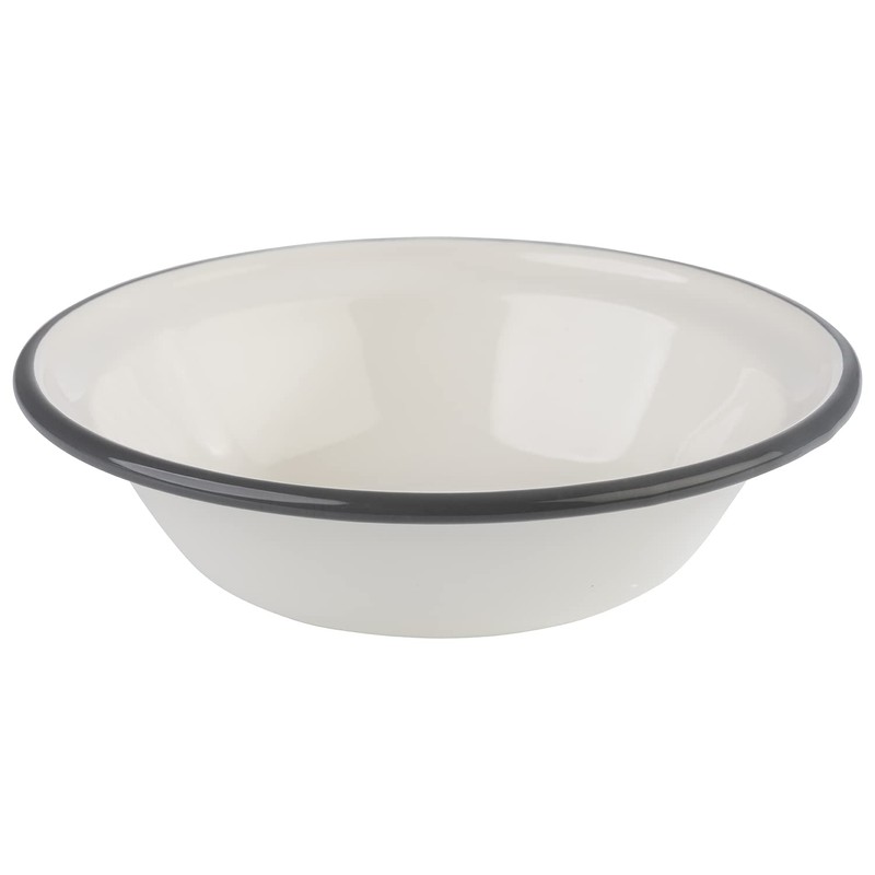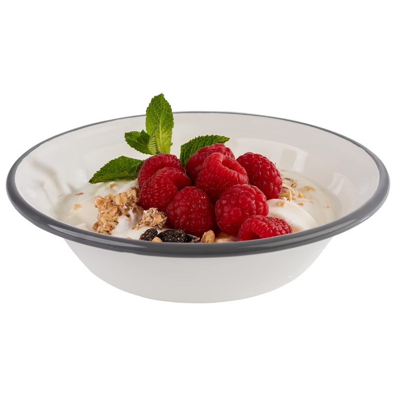 APS 98669 Set of 2 Enamel Bowls Diameter 16.5 cm Enamelled Sheet Steel Cream White with Grey Edge