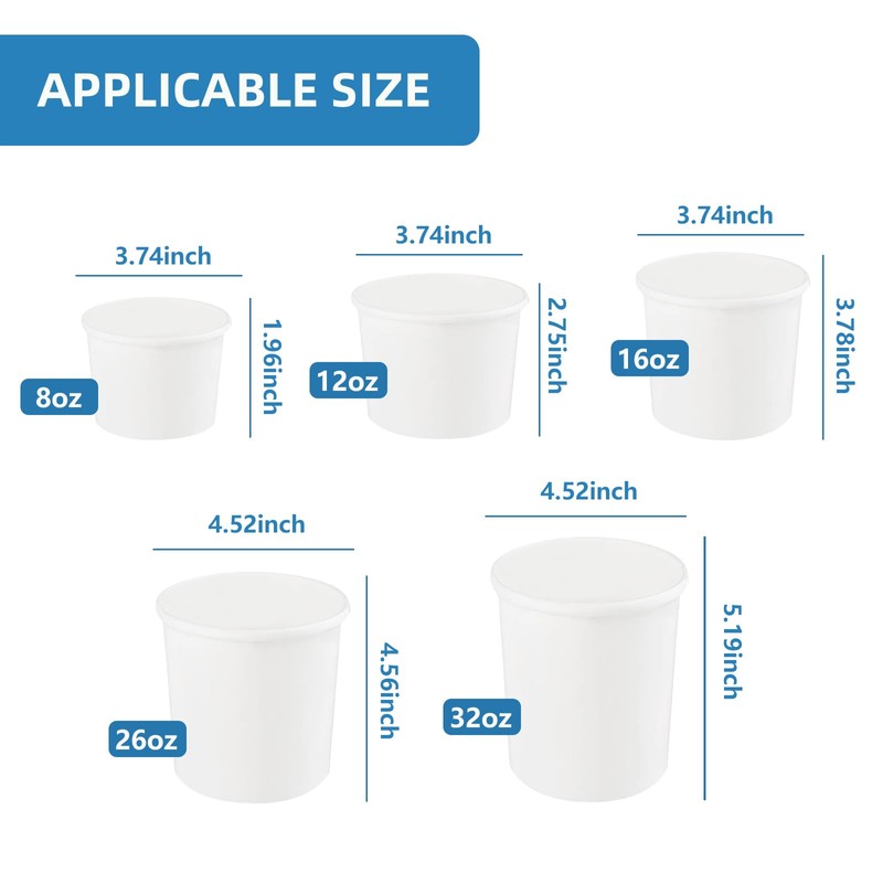 • Built to Tough: Thick-layer paper bowls for extra durability. This soup bowl features reinforced bases, double-layer lids, and thickened rolled rims. Even hot ramen or brothy soups won’t soften the bowl or cause leaks