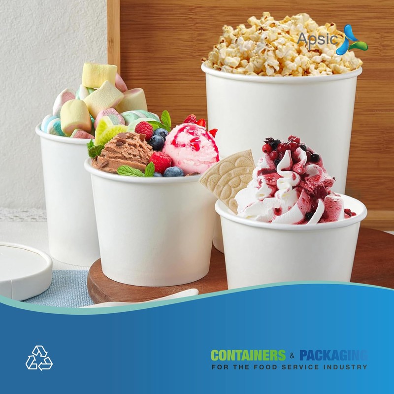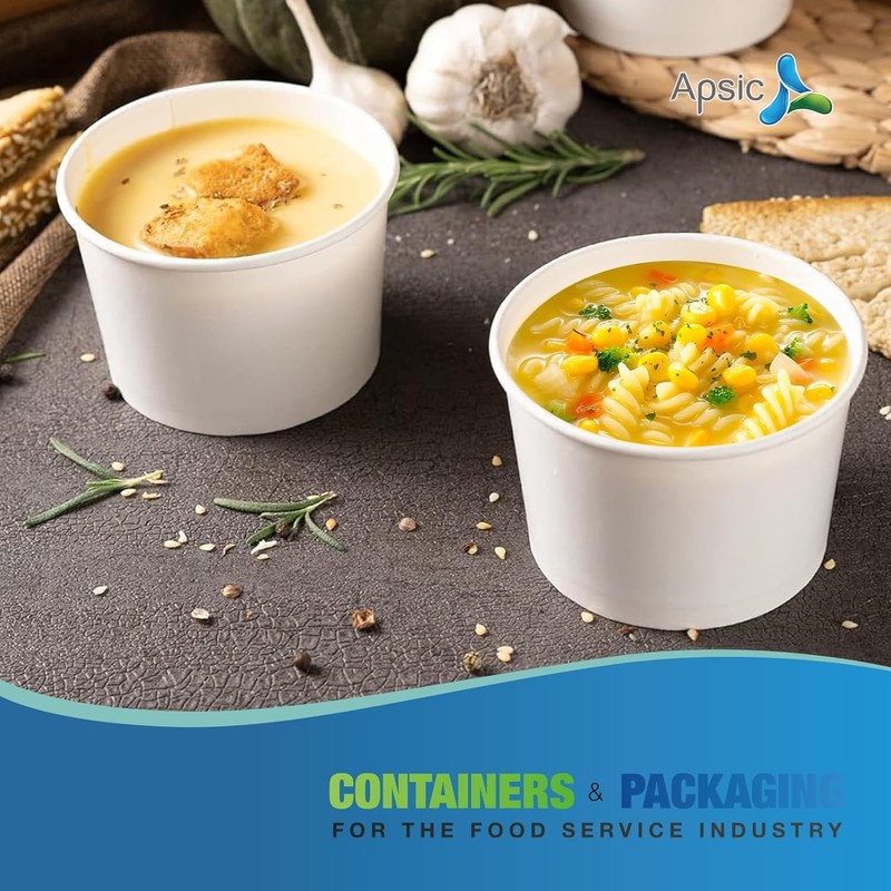 APSIC Disposable Paper Soup Cups - 100 Sets 8oz Small To Go Soup Bowls with V...