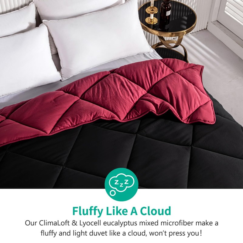 APSMILE Down Alternative Duvet Insert | King Size All-Seasons Bed Comforter | Luxury Ultra-Soft Cloud Fluffy Lightweight Lyocell Mixed Microfiber Quilted Comforter (106x90, Black/Wine Red)