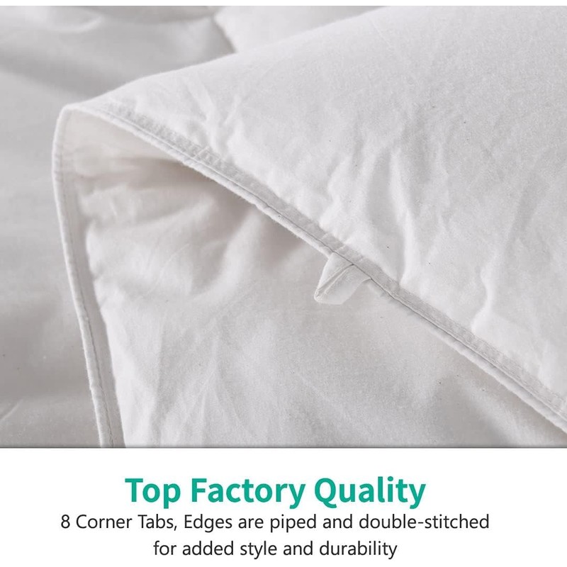 - Special Design: This feather down duvet with baffle boxes design makes the most of the loft so the fillings remain evenly distributed throughout the duvet. Double-stitched edge piping and 8 corner tabs can help easily attach duvet cover.