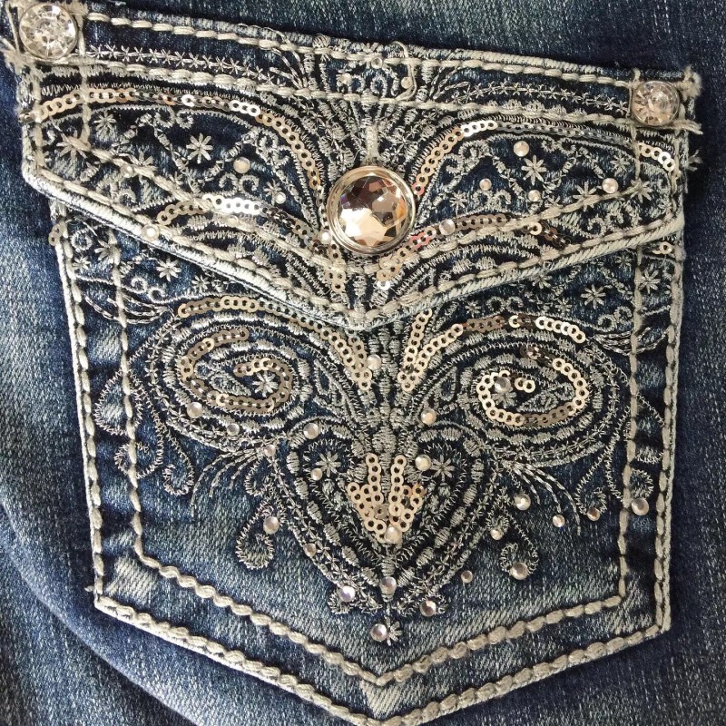 Women’s Bling Bootcut Fleur De Lis Stretch Metallic Jeans Size 10 NEW $64