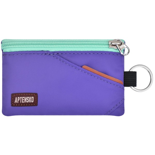 APTENSKO RFID Travel Wallet with Adjustable Lanyard-Zipper Small Wallet with ID Card Holder, Keychain for women&men-Minimalist Slim Waterproof Nylon case for ID, Cash, Key (Violet)