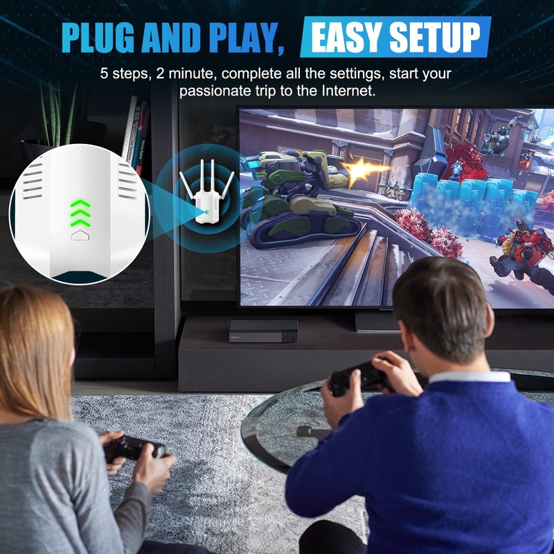 - 𝐒𝐔𝐏𝐄𝐑 𝐄𝐀𝐒𝐘 𝐒𝐄𝐓𝐔𝐏: If your router supports WPS mode, then, congratulations! You just need to press the WPS Mode button on your router and Wi-Fi signal extender to set it up in seconds. If your router doesn't support WPS mode, don't don't be frustrated! All you need to do is follow the instruction manual, 5 super simple steps, and you can finish the setup in 2 minute to start the journey of enjoying the internet world.