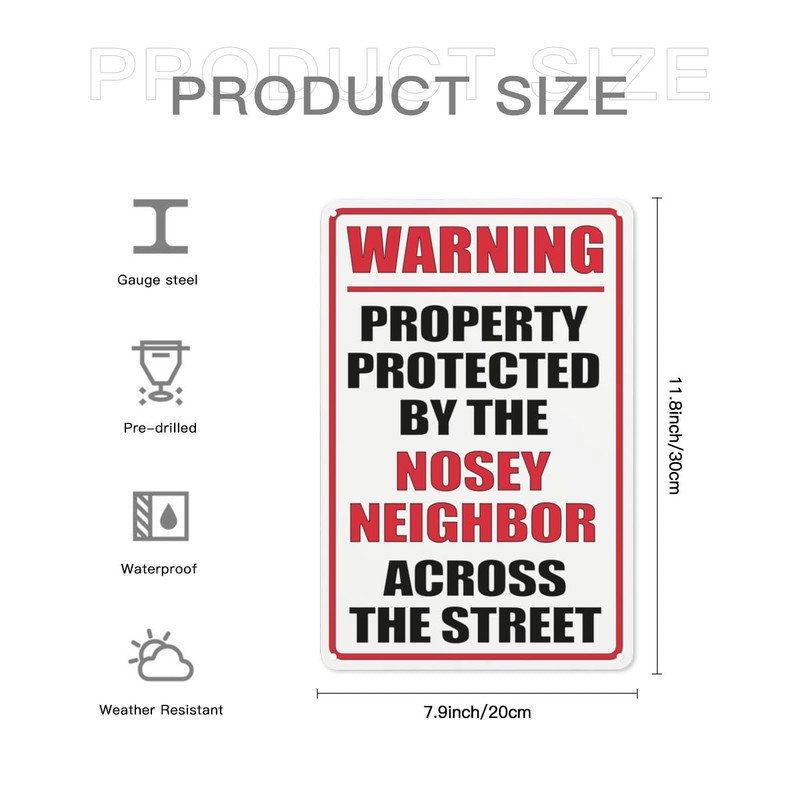 - Stylish Decor: Vintage-inspired tin sign Warning Property Protected By The Nosey Neighbor Across The Street,perfect for adding rustic charm to your patio, porch, or indoor spaces.