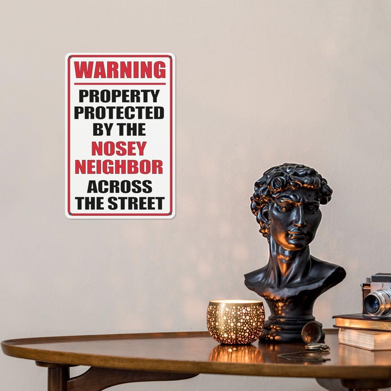 APTMBKY Nosey Neighbor Signs Nosy Neighbors Bad Neighbor Sign Property Protected By The Nosey Neighbor Across The Street Tin Sign Annoying Neighbor Signs 12 X 8 Inch