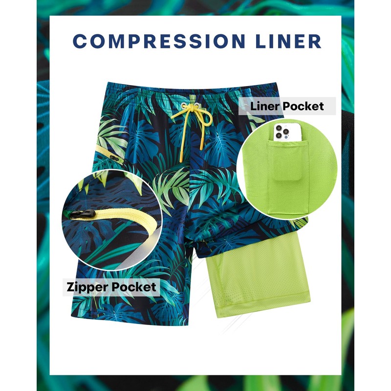 - 2 in 1 Swim Trunks---Men’s swim trunks are built in Butterfly Hole compression liner which is 4 way stretch, lightweight and very soft. It can bring more supportive but not feel tight, avoid your leg from chafing and protect your skin from scratching