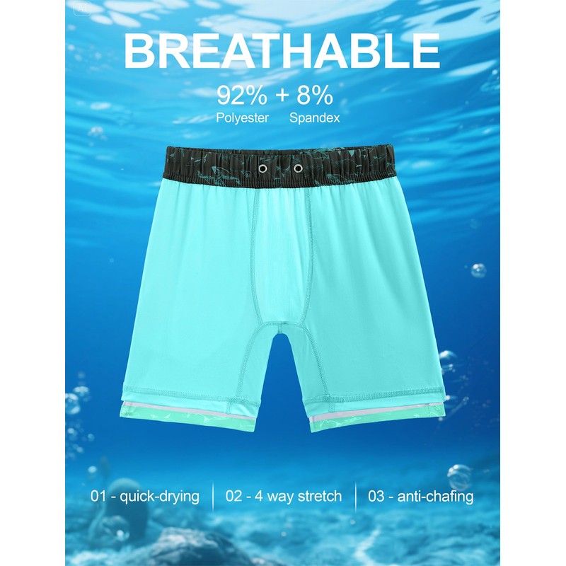 - Breathable Elastic Fabric - These boys swim trunks are made of 92% Polyester and 8% Elastane fiber, providing four-way stretch, allowing for free movement whether swimming, surfing, or playing on the beach. Lightweight and fast drying fabrics keep children comfortable throughout the day.