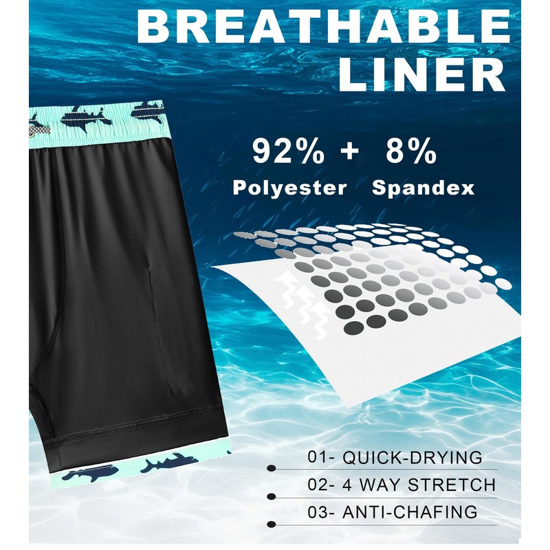 - 2 in 1 Swim Trunks---these compression lined swim trunks are built to prevent friction, painful skin irritations and help you improve your performance by reducing muscle fatigue and soreness. These compression lined swimsuits trunks will increase your mobility and don' t move around when you' re constantly moving and keeping active to enhance comfort. Fabric features with 4 way stretch, quick dry, lightweight, UPF50+ silky touching and good construction.