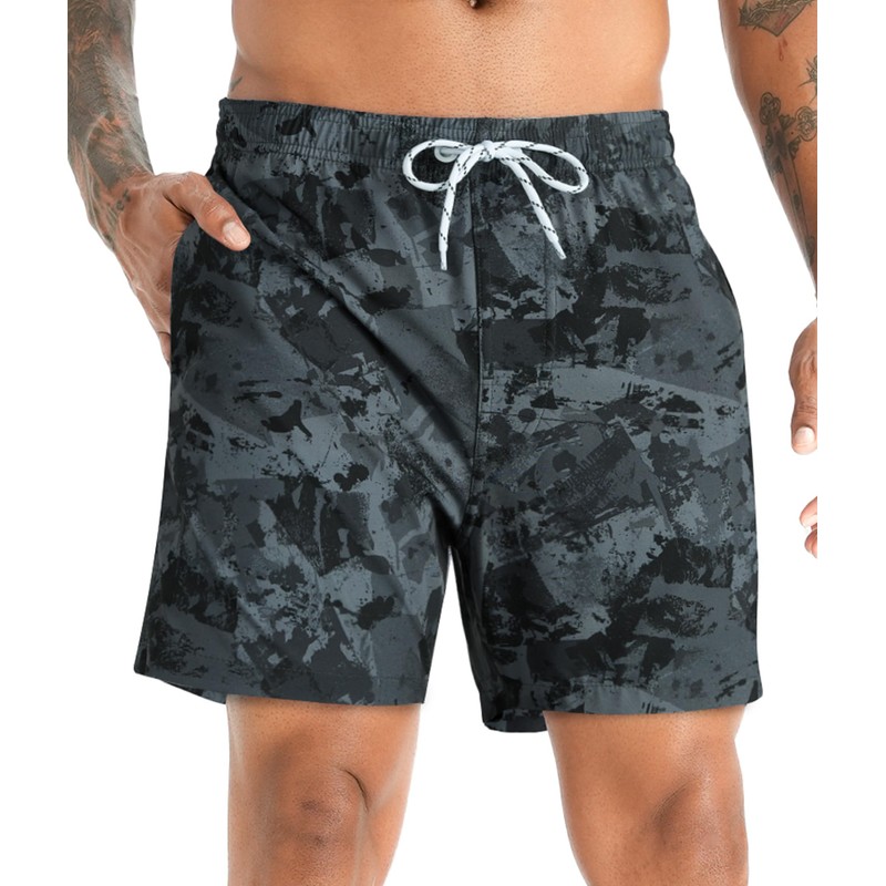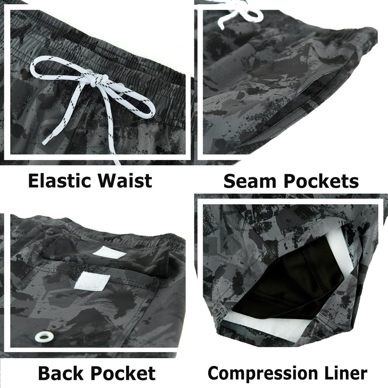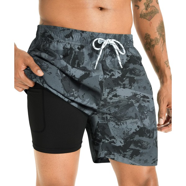 APTRO Men's Swimming Trunks Swim Shorts Board Shorts Short Quick-Drying Board Shorts 2 in 1 Beach Shorts with Inner Shorts, Grey Camouflage Mk323
