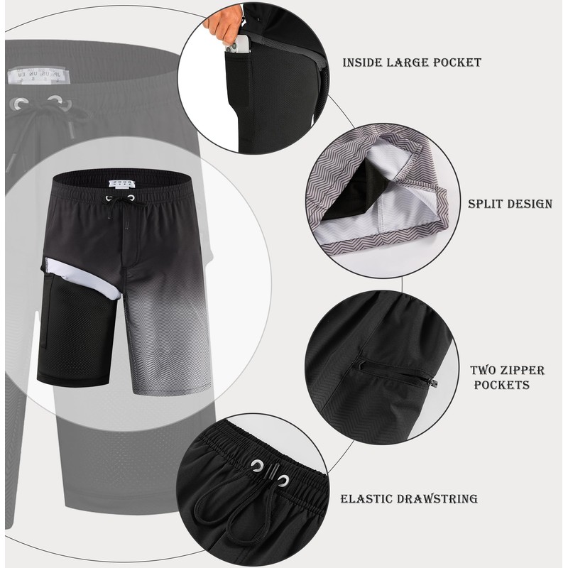 - Quick-Drying:Our Men's Swim shorts and trunks are breathable and quick-drying,perfect for the beach.The Compression lining is much more comfortable than mesh lining,better for the gym.