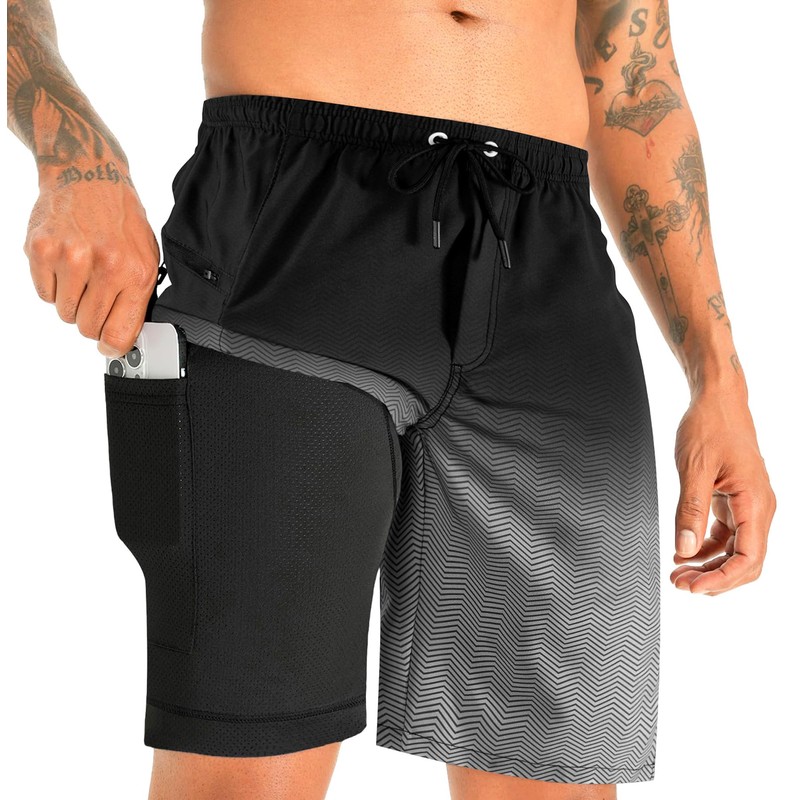 - Men's Shorts:Our men's Swimming Shorts are made of 92% Polyester, 8% Elastane.These Men's 2-in-1 shorts are made of breathable skin-friendly,lightweight and stable stretch material that can be maximally moved,the lining has breathable holes.