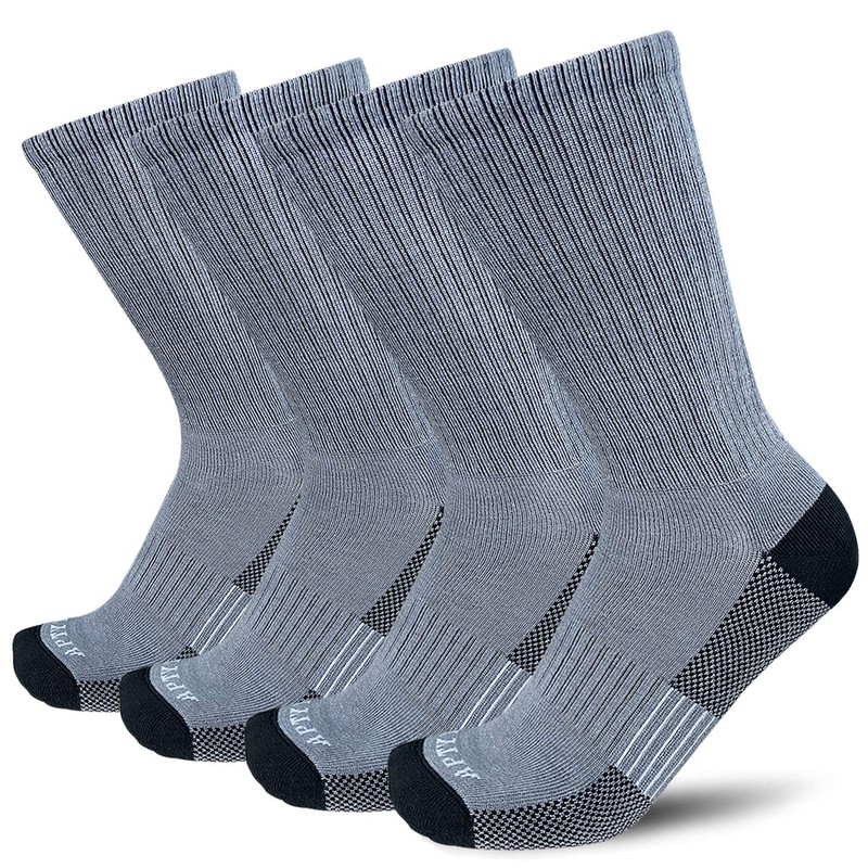 APTYID Men's Moisture Wicking Cushioned Crew Work Boot Socks, Size 9-12, Dark Grey, 4 Pairs