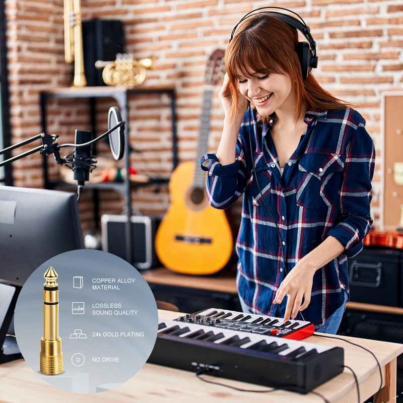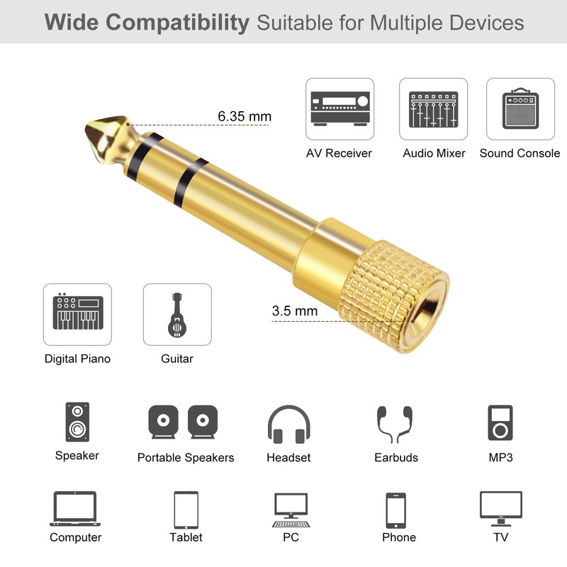 • 【Upgraded Version】 New edition 5-pack of 6.35mm (1/4 inch) male to 3.5mm (1/8 inch) female stereo audio jack adapters. (For example, connect an AMP or piano to the headphones with a 1/8 (3.5mm) extension cable.)