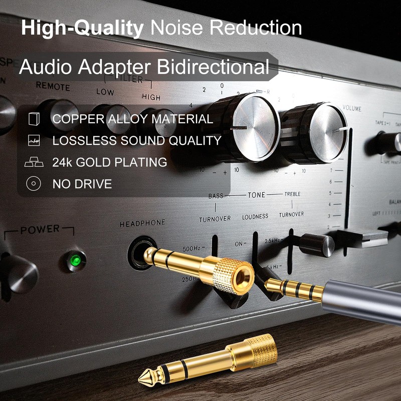 • 【Plug and Play】 The knurled end of the 1/8 to 1/4 inch adapter adopts a gear grinding technique; 360-degree grip treads help with easy plugging and unplugging; 3.5mm jack firmly accepts the headphone plug