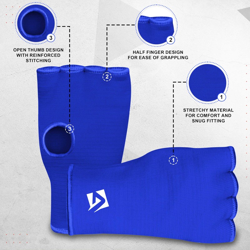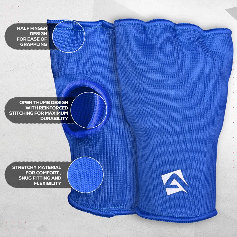 - AQF inner elasticated bandages are available in 3 colors and a half finger design to match your gloves. Sold in pairs. Ideal for Boxing, MMA, Muay Thai Kickboxing, and other combat sports. Can be washed in slightly warm soapy water but does not tumble dry.