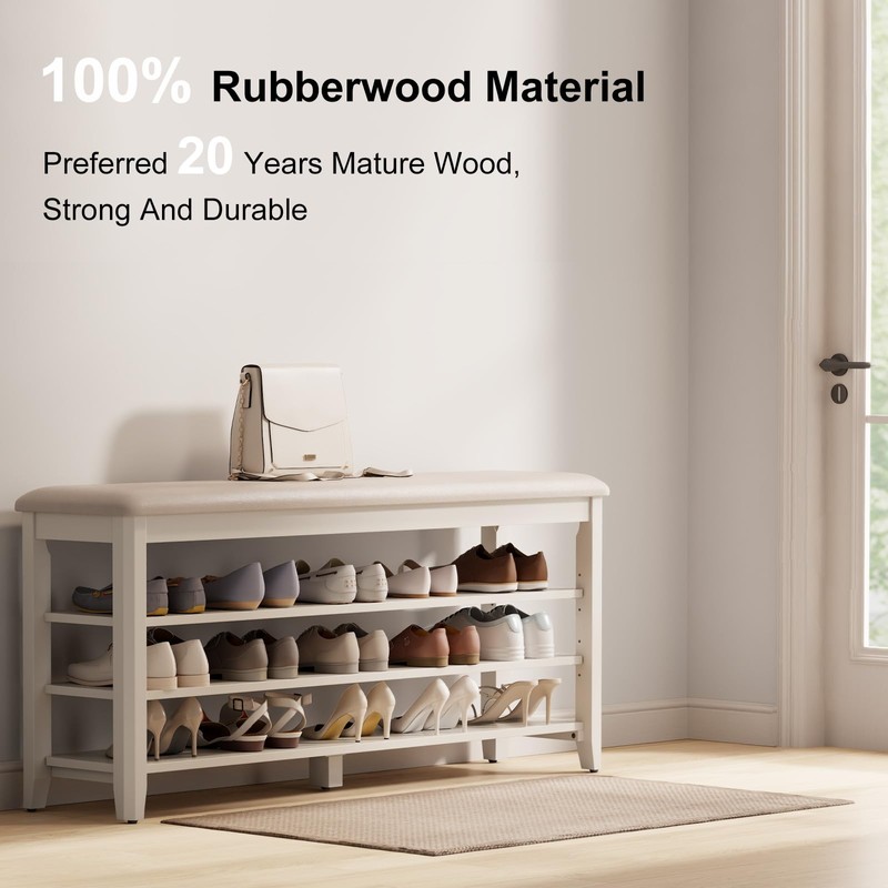 - Durable Rubberwood Construction:Made from 100% sturdy rubberwood, this entryway bench can support up to 500 lbs, making it ideal for entrances, hallways, and mudrooms. Its robust frame ensures long-lasting stability.