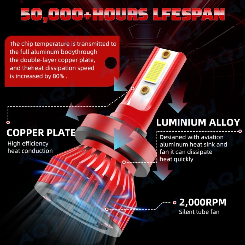 3. Fast cooling, the appearance of the most advanced design, thermal structure ingenious and reasonable. Less warranty, power driver with wide voltage constant current mode, the car can respond to a variety of voltage instability, the effective protection of normal use Led efficient and simple structure. Fewer Components damaged, repair the probability is very low, compared with HID ballast repair lower than 80%.