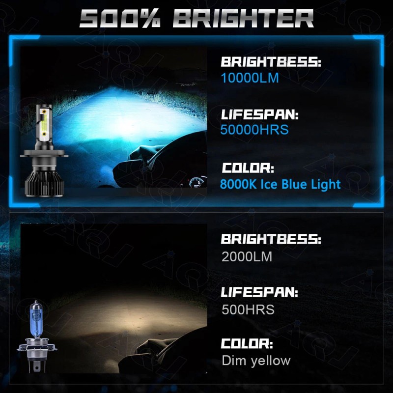 aqj H4 9003 Super Ice blue 40000LM Kit 8k LED Headlight Bulbs High Low Beam Combo 2